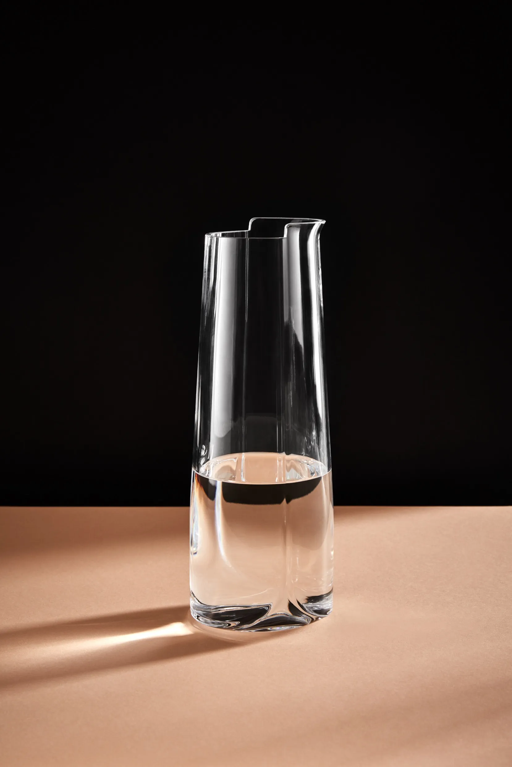 – The carafe represents a further development of the innovative Hew concept; in a subtle variation on the formal design language of the glassware, two channels rise up on each side of the cylinder and extend dramatically to form the lip of the carafe.