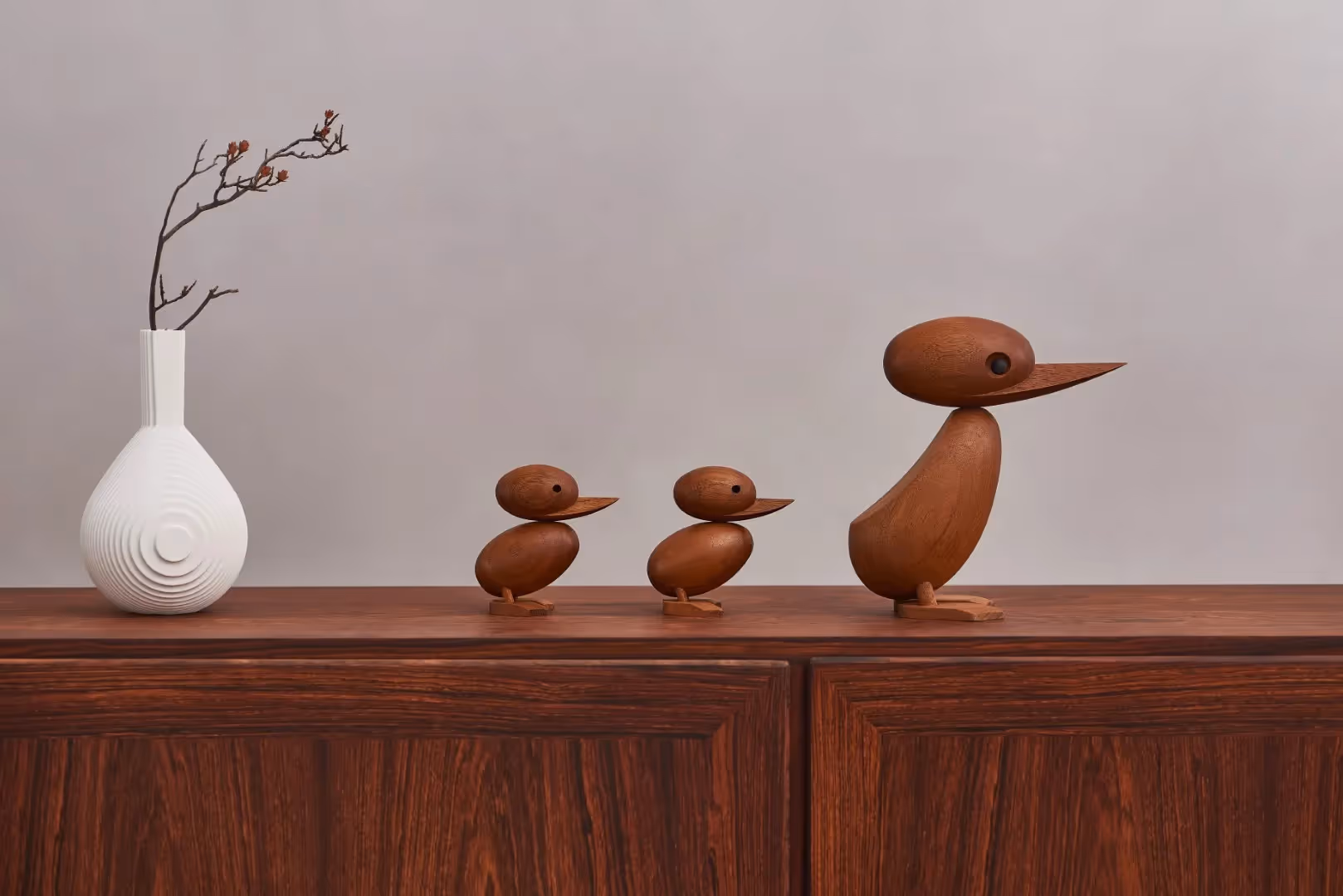 Bølling’s now-famous Duck and Ducklings have won the hearts of design aficionado's throughout the world. Each piece is handcrafted from teak and features smooth, rounded forms and exaggerated beaks. They are very cute and elegant, making them a charming addition to a desktop or display area.