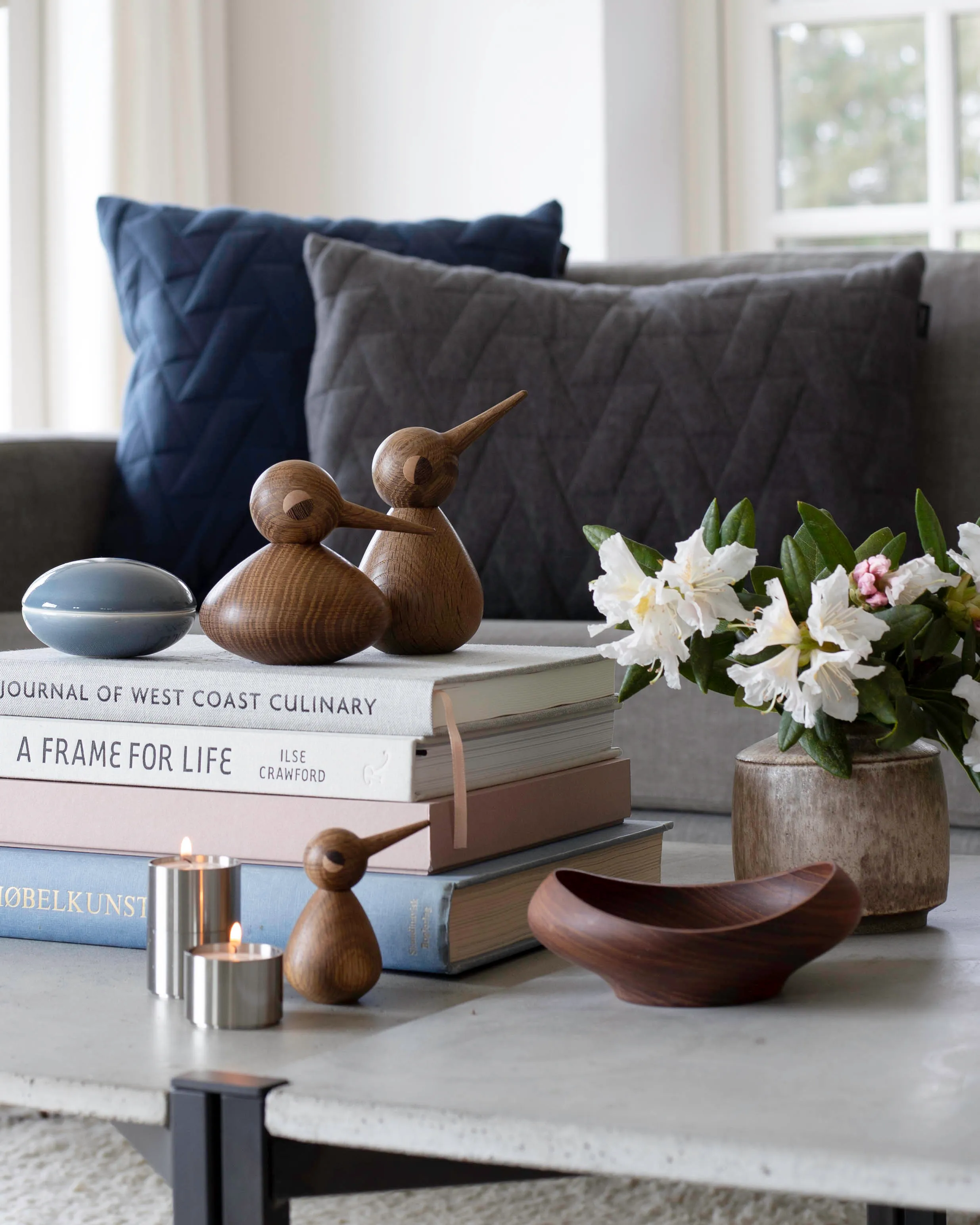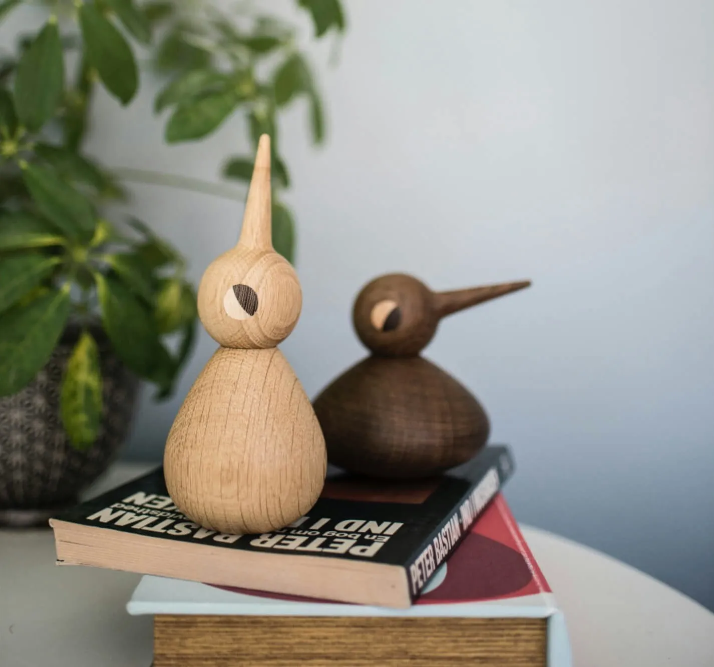 Each bird is handmade by an experienced wood-turner in Denmark and is available in natural and smoked oak wood. Birds look great on their own or create an extended family with the different options available. The birds' bodies can be overturned to create a new look and individual personality.