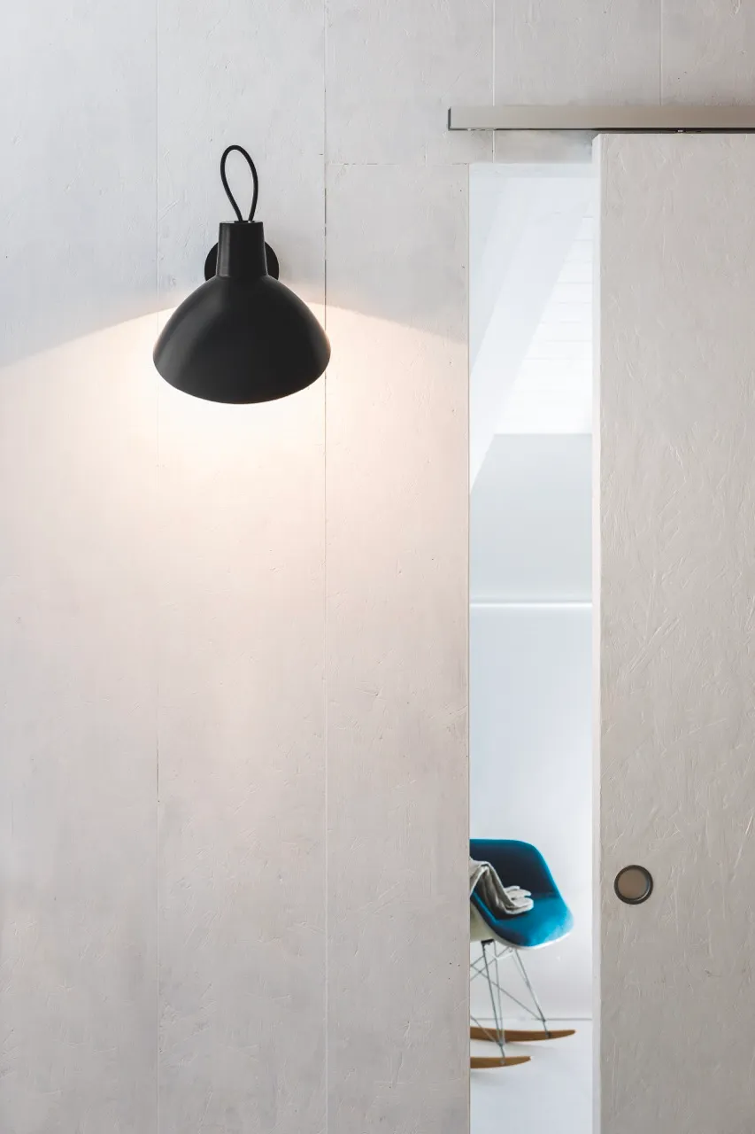 The Wall model is mounted on a brass fixture, allowing the reflector to rotate 350 degrees, and can be angled 160 degrees, providing a wide range of lighting compositions. The VV Cinquanta reflector is made of enamelled spun aluminium, available in original Vittoriano Viganò colours.