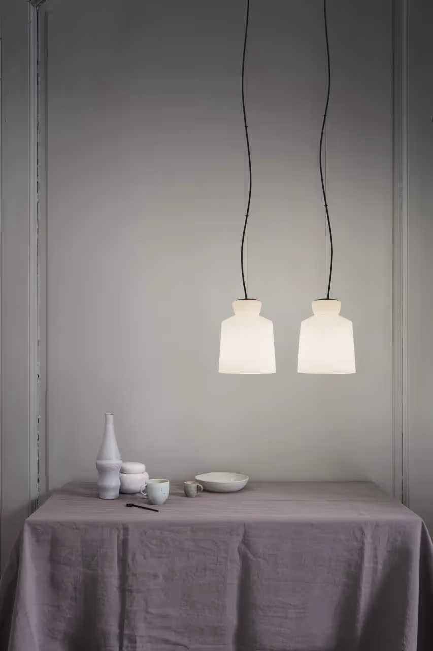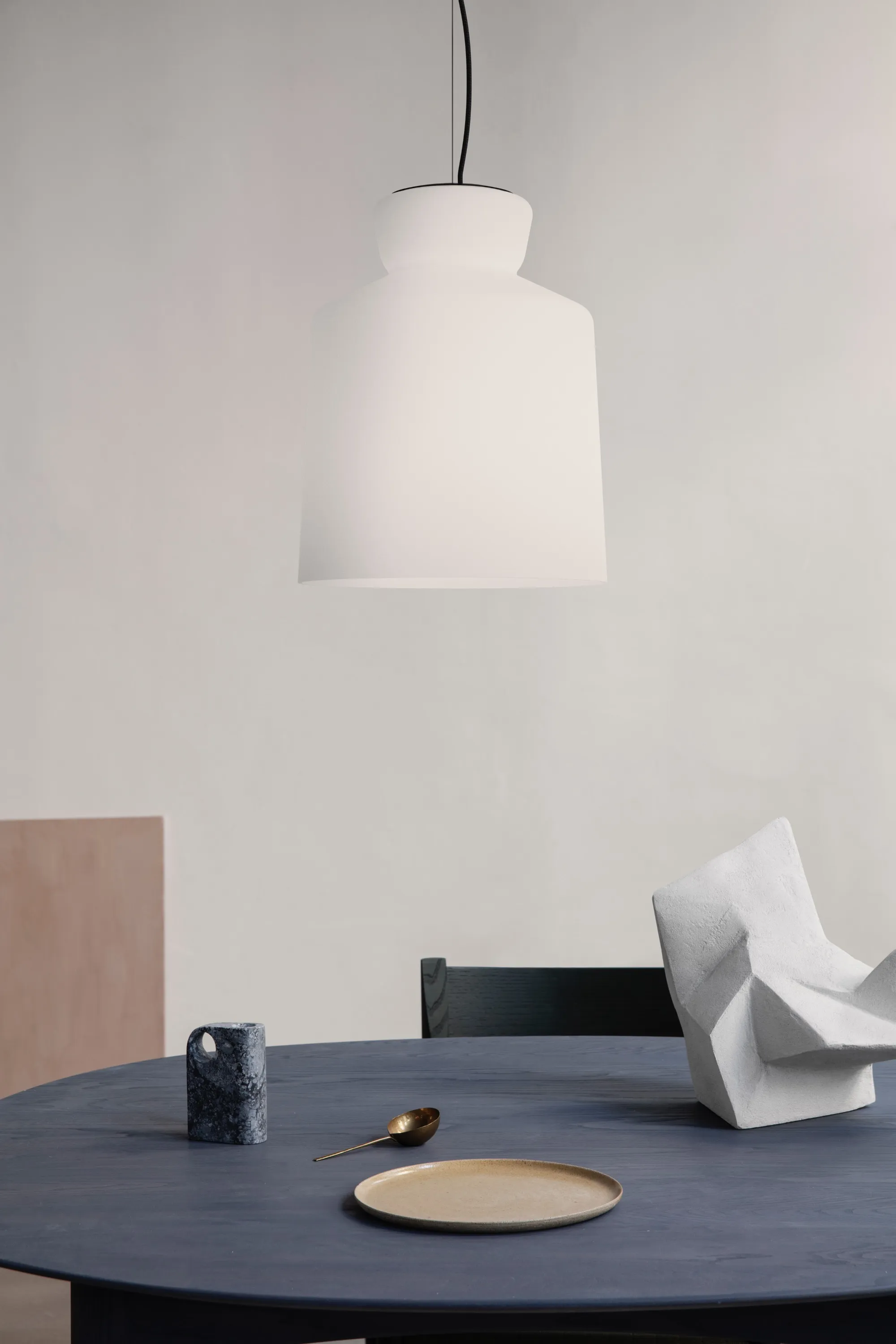 Astep reintroduces a remarkable suspension light in handblown opal glass. For more than half a century, the SB Cinquantotto design has held a special place in the Sarfatti family. A characteristic shape, an original wire mounting and a timeless choice of materials make the SB Cinquantotto pendant a true masterpiece for contemporary living.