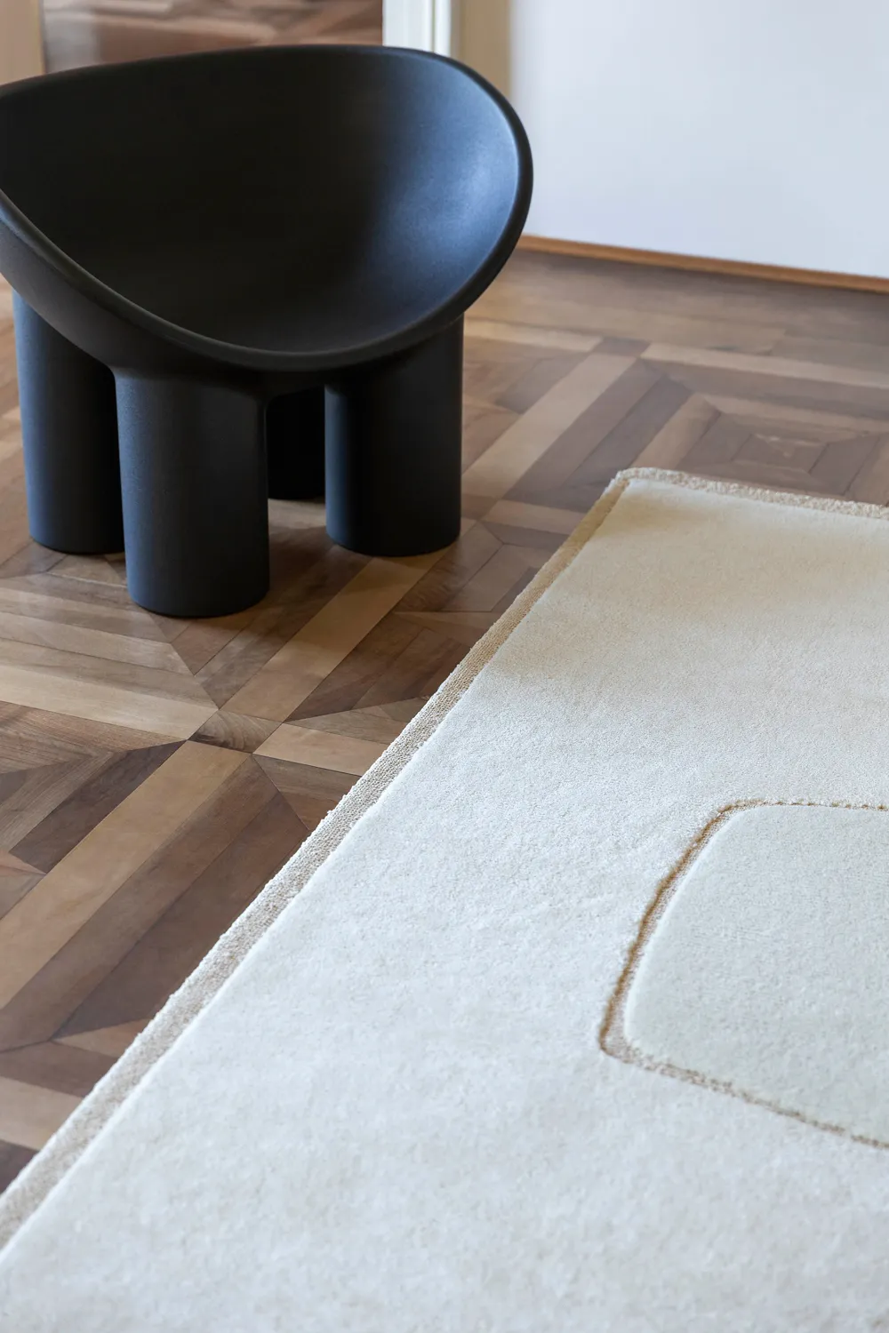 The Cut Out Monocromo Linen Rug designed by Parisotto+Formenton for the Architectural Collection of cc-Tapis is made with Himalayan wool and linen in white colour.