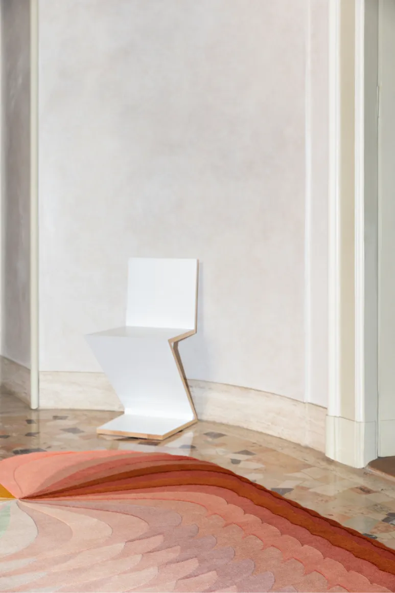 A digital drawing which allows every rug to display an evolution of the different wools, sometimes unexpectedly, placed side by side, outlining multiple chromatic associations. A visual exercise aimed to transform the intangible idea of shade and hue into a finely produced and sophisticated product.