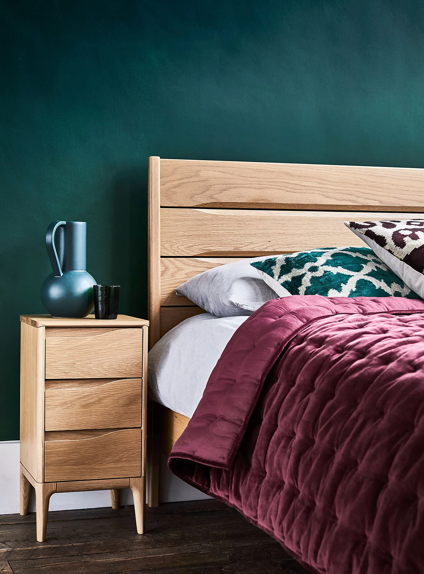 Rimini 4-Drawer Low Wide Chest by Ercol brings serene order to the bedroom, crafted in light oak with clean lines and gentle curves that feel calm, contemporary and impeccably made. Ercol has been designing honest, timber-led furniture in Buckinghamshire since 1920, a legacy of craftsmanship that elevates everyday rituals.