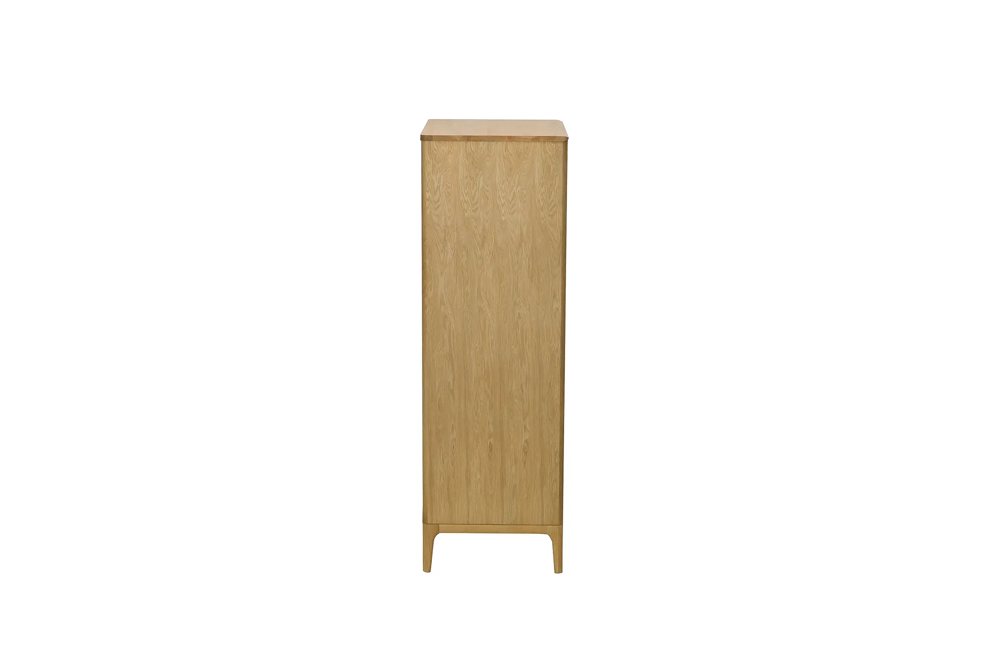 The Rimini 6-Drawer Tall Chest designed by Dylan Freeth, balances refined craftsmanship with everyday ease. In light oak, its clean lines and gentle curves frame a purposeful layout: a deep base drawer supports five equal drawers above, each with a sculpted cutaway pull for smooth opening and closing.