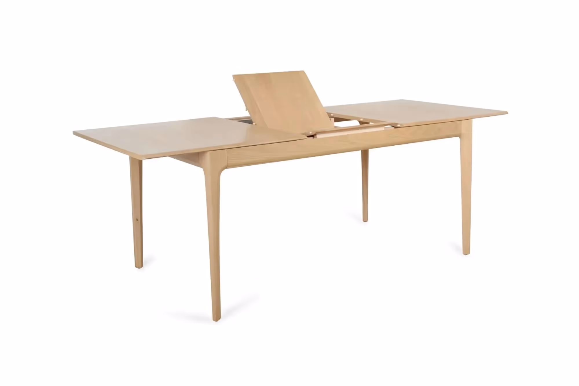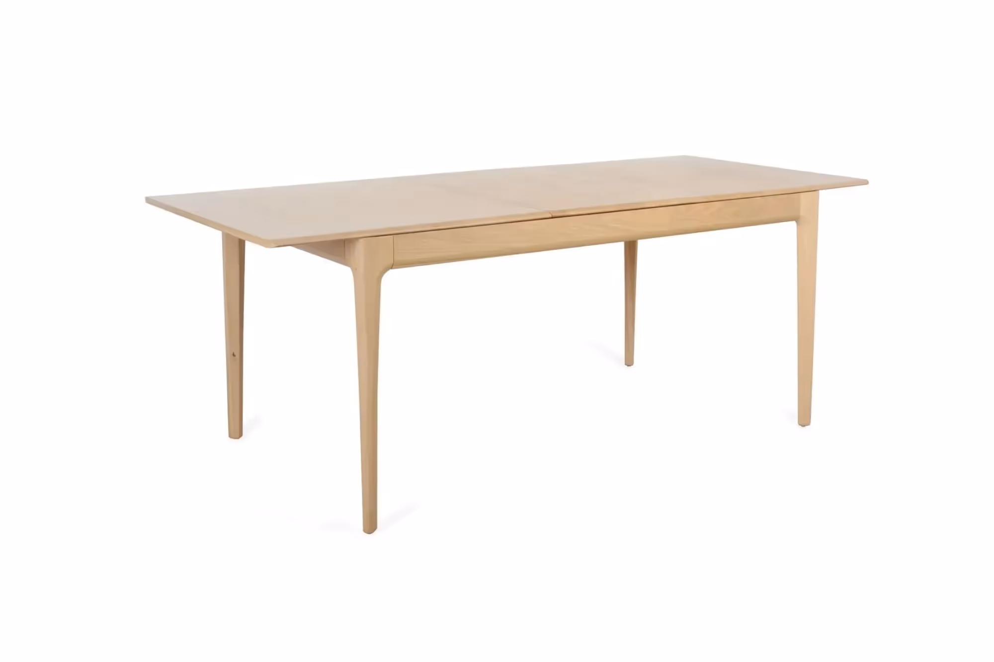 The Romana Extending Dining Table by Ercol pairs sculpted elegance with practical ease. Crafted in sustainable solid oak with a durable clear matt lacquer that protects and reveals the grain, its curved top edges flow into chamfered legs for an organic profile. A discreet reciprocating mechanism lets you pull one end and the other opens, revealing a butterfly extension leaf that flips into place.