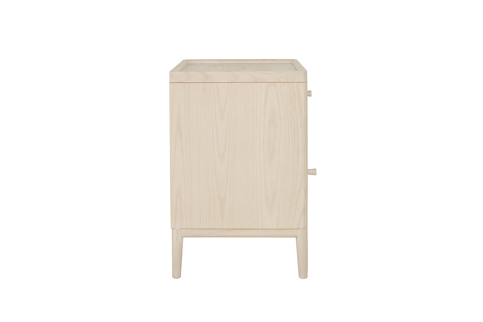 The Salina bedside cabinet features a soft, elegant profile crafted to the high standard that defines the Ercol legacy. A practical tray top defines the design with a handy drawer and a generous cupboard space beneath it. The bedside cabinet is finished in a white-washed stain and clear matt lacquer to sit perfectly with other pieces in the Salina range.