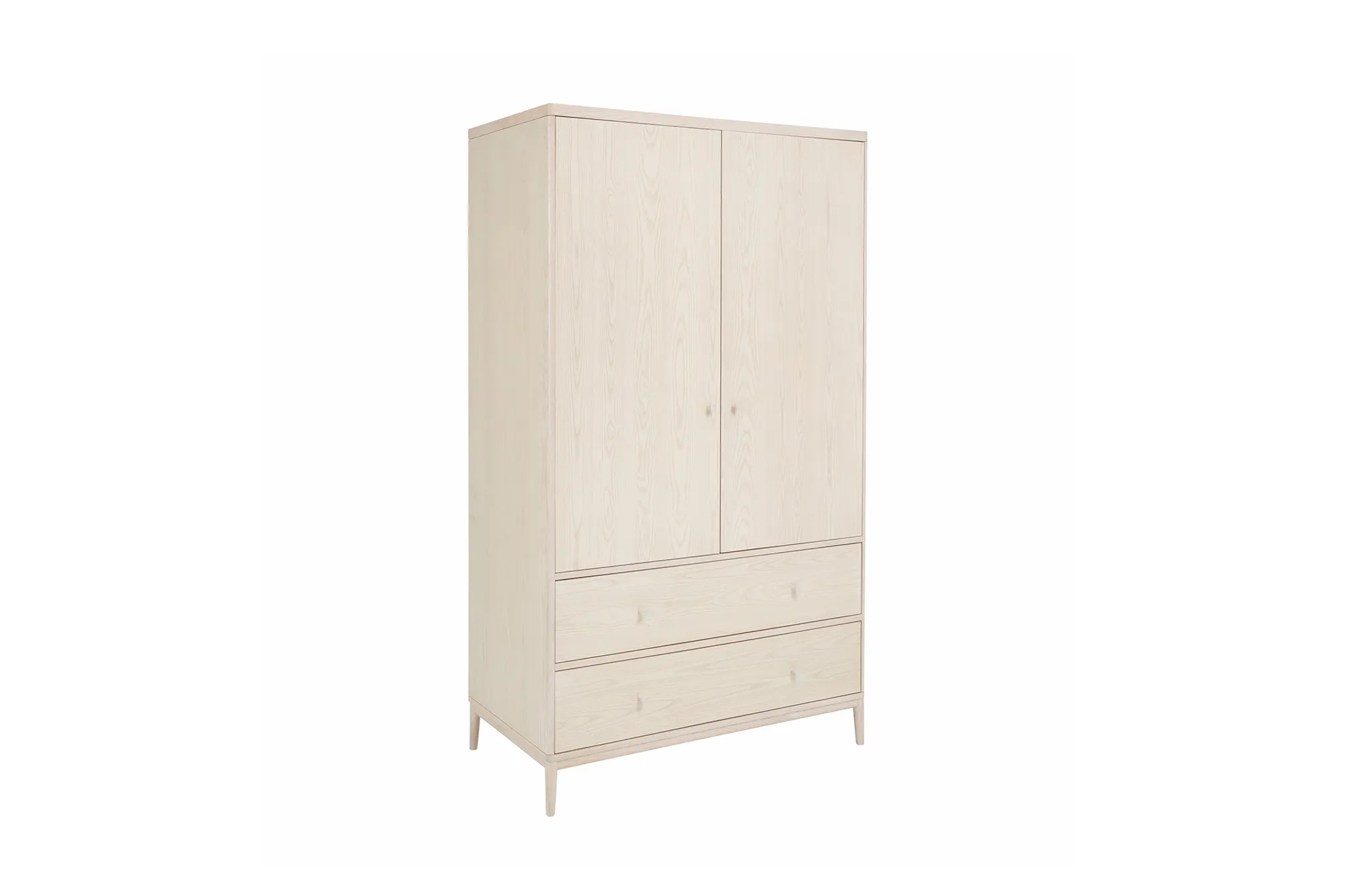 The Salina Wardrobe features a contemporary, elegant profile and is crafted to the high standard that defines the Ercol legacy. The wardrobe offers substantial storage space with a sturdy wooden hanging rail and two generous drawers beneath the doors.