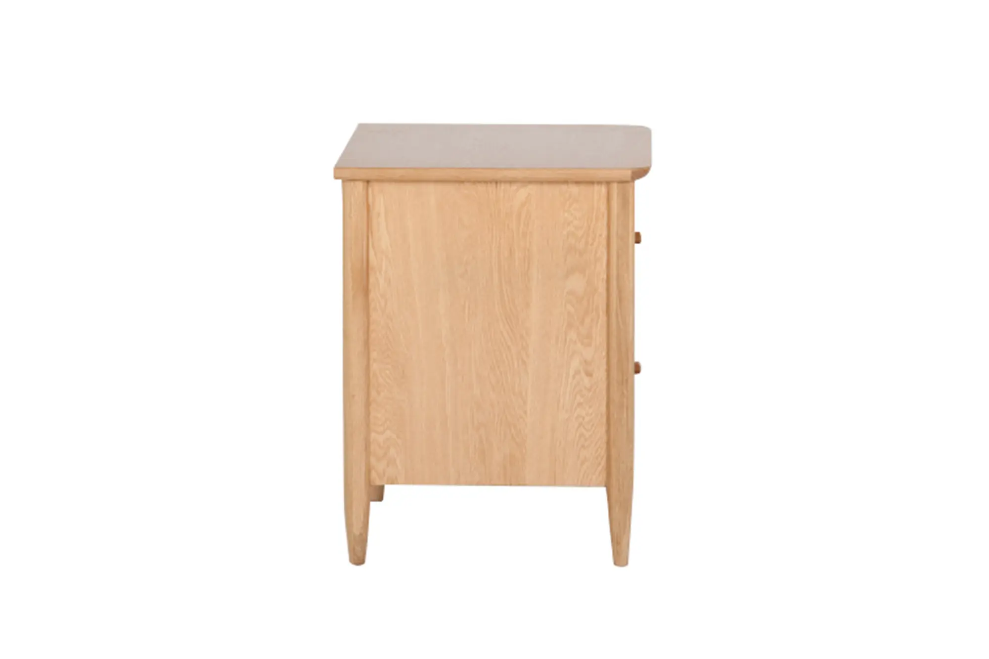 The Teramo Bedside Cabinet provides two spacious drawers for storage of personal possessions. The bedside features the signature tapered turned shapes in the legs and curved profiles on the top surface. Double chamfered edges on the traditional oval drawer handles create a defined and modern profile and are superbly tactile.