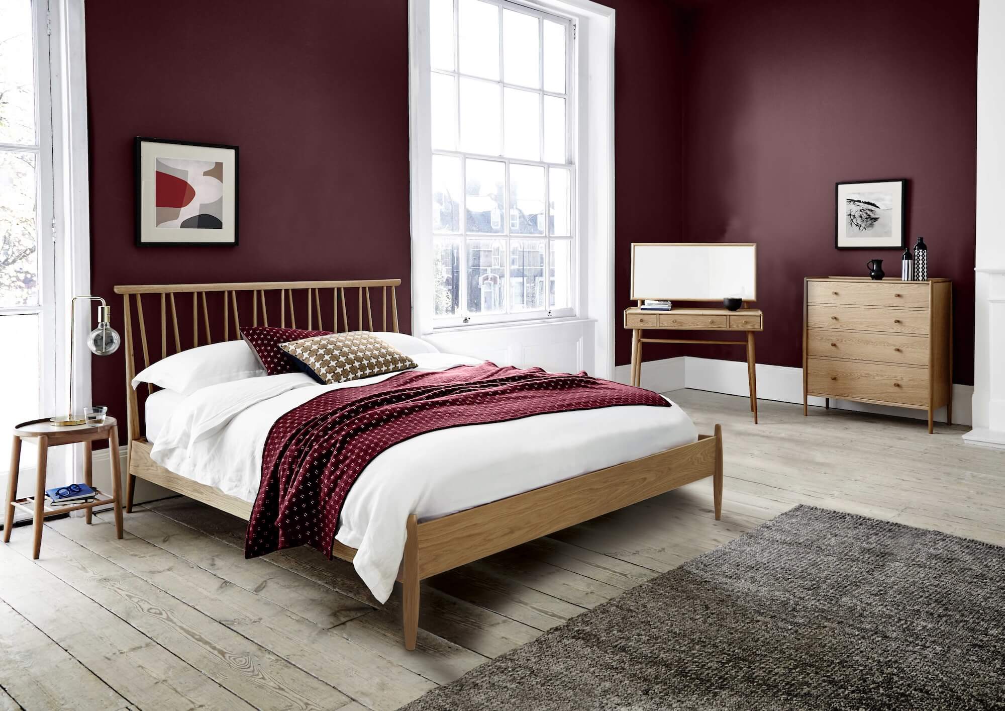 Evoking Ercol’s mid-century heritage, the Winslow Bed brings a poised, modern calm to the bedroom. Crafted from vibrant oak, its finely strutted headboard and tapering legs are finished in a contemporary dead matt lacquer that celebrates the timber’s grain. The silhouette nods to the sculptural clarity of classic Ercol spindle work while remaining refreshingly minimal and easy to live with.
