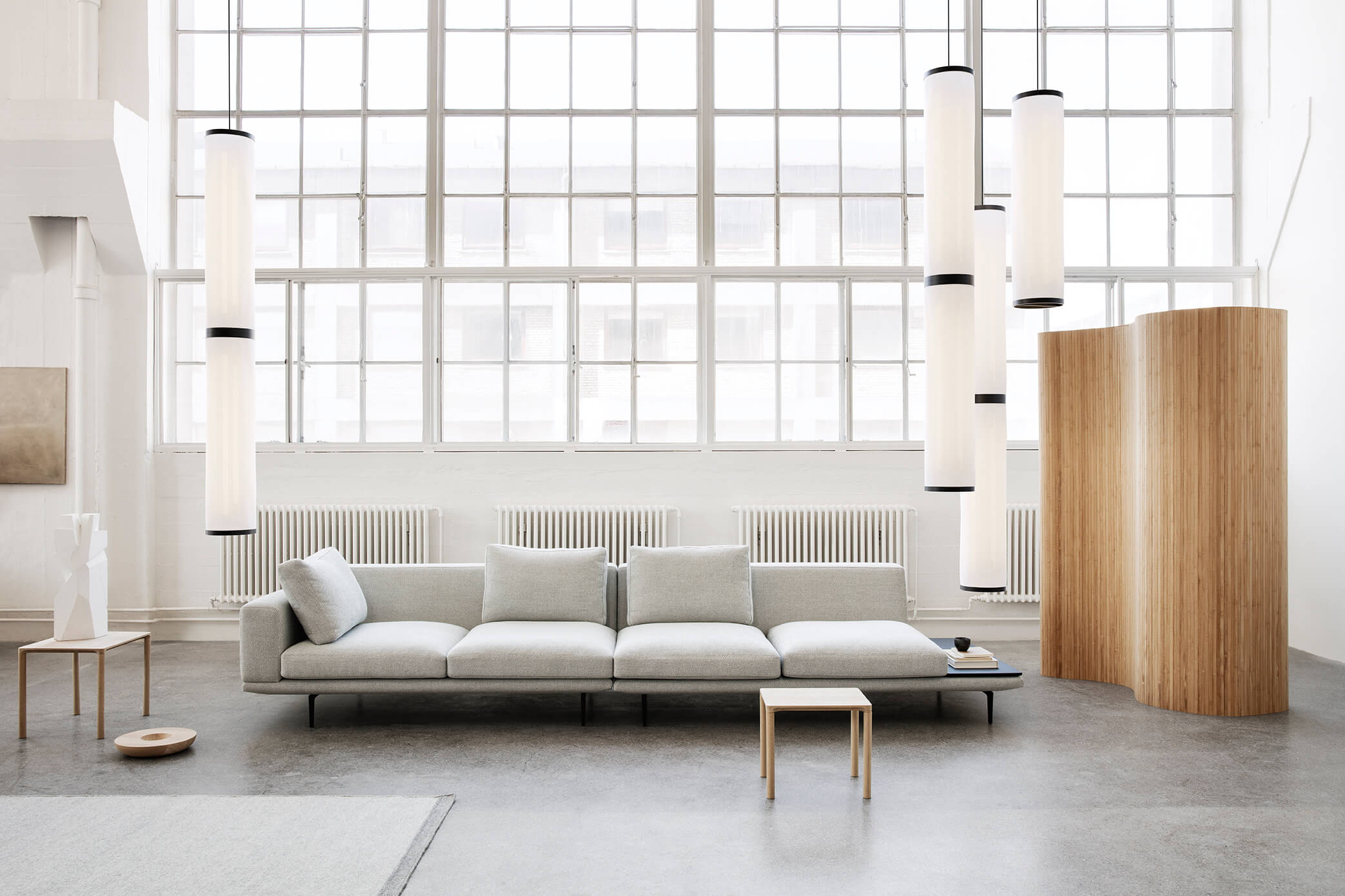 Part sculpture and part light source, Isol can be used in a variety of combinations and in private and public environments as an aesthetic way of bringing acoustic properties into a space. Alone, it convinces through quiet authority offering a sense of privacy. In multiples, its distinctive character is enhanced by connecting the rings to extend lighting and noise-absorbing power. A seamless flow of colour and texture is created, while embracing the die-cast aluminium rings. Its internal details are not directly visible from the outside which allows the lamp to melt into the scenery turning it into a performing and life enhancing piece of design.