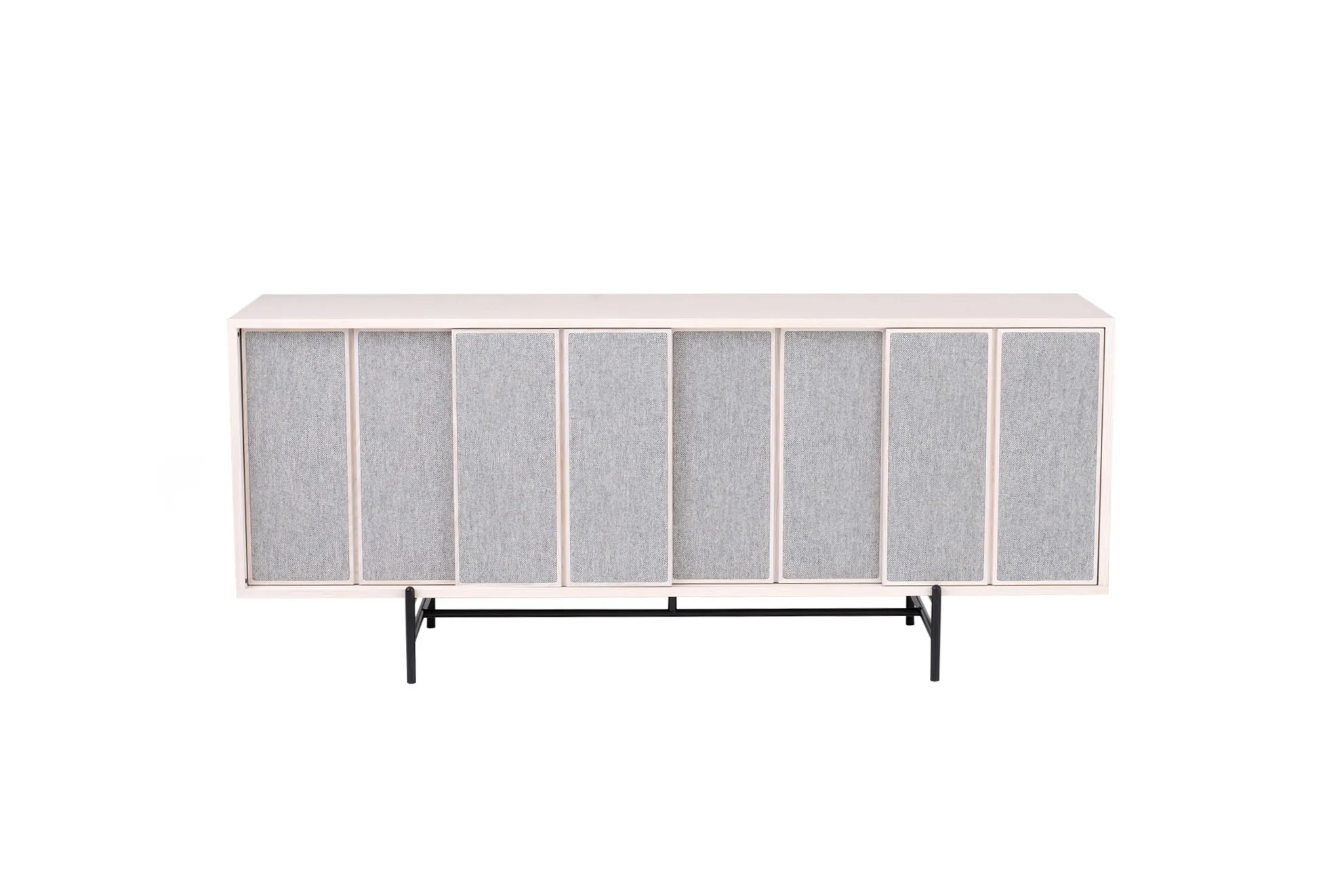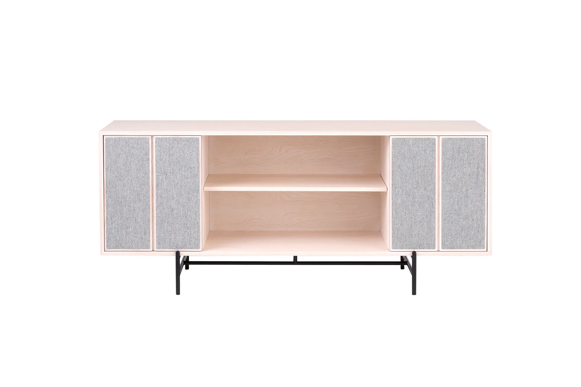 Canvas Large Cabinet by Ercol, created with Norm Architects, celebrates natural materiality and calm geometry. Released in 2020, this refined storage piece keeps visual noise at bay. Sliding doors read as separate planes yet move as one, unified by a hidden handle within a wooden groove. For added softness, optional exterior fabric panels come in a curated palette of muted textiles.
