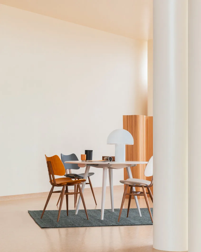 Designed in 1956 by Ercol’s founder, this oval table embodies purposeful elegance. Two hinged leaves drop to save space, then open to seat four comfortably and up to six for lively gatherings. Its streamlined, pure form and finely crafted details reflect Ercolani’s timeless vision, making it as at home for dining as it is for flexible living and working in contemporary interiors.