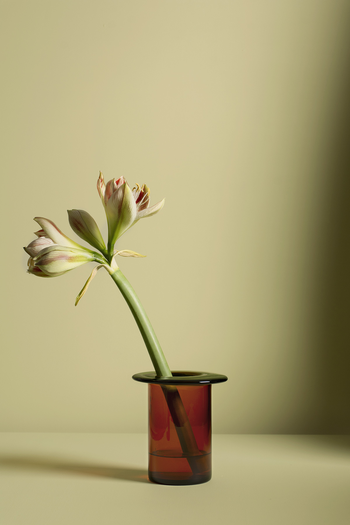 Named for rhubarb in Norwegian, the Rabarbra Vase distills Anderssen & Voll’s crisp sensibility into a pure composition of cylinder and disc. Conceived from a rudimentary full scale sketch with colored plastic foil, its strict architectural grammar meets a quietly animated presence, reading like a stylized flower, the poised top resting on the body like petals on a stem.