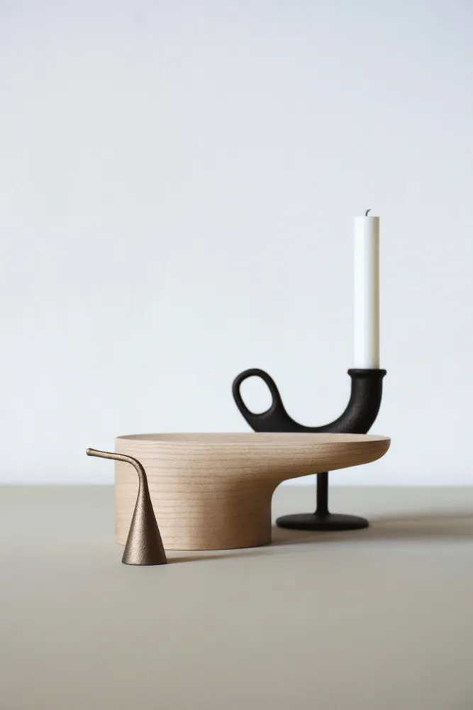 Nedre Foss’ Sammu is a beautifully designed candle snuffer designed by Studio Tolvanen. A small table sculpture featuring a tactile brass surface, Sammu has a delicate and fruity shape that invites you to both look and touch.