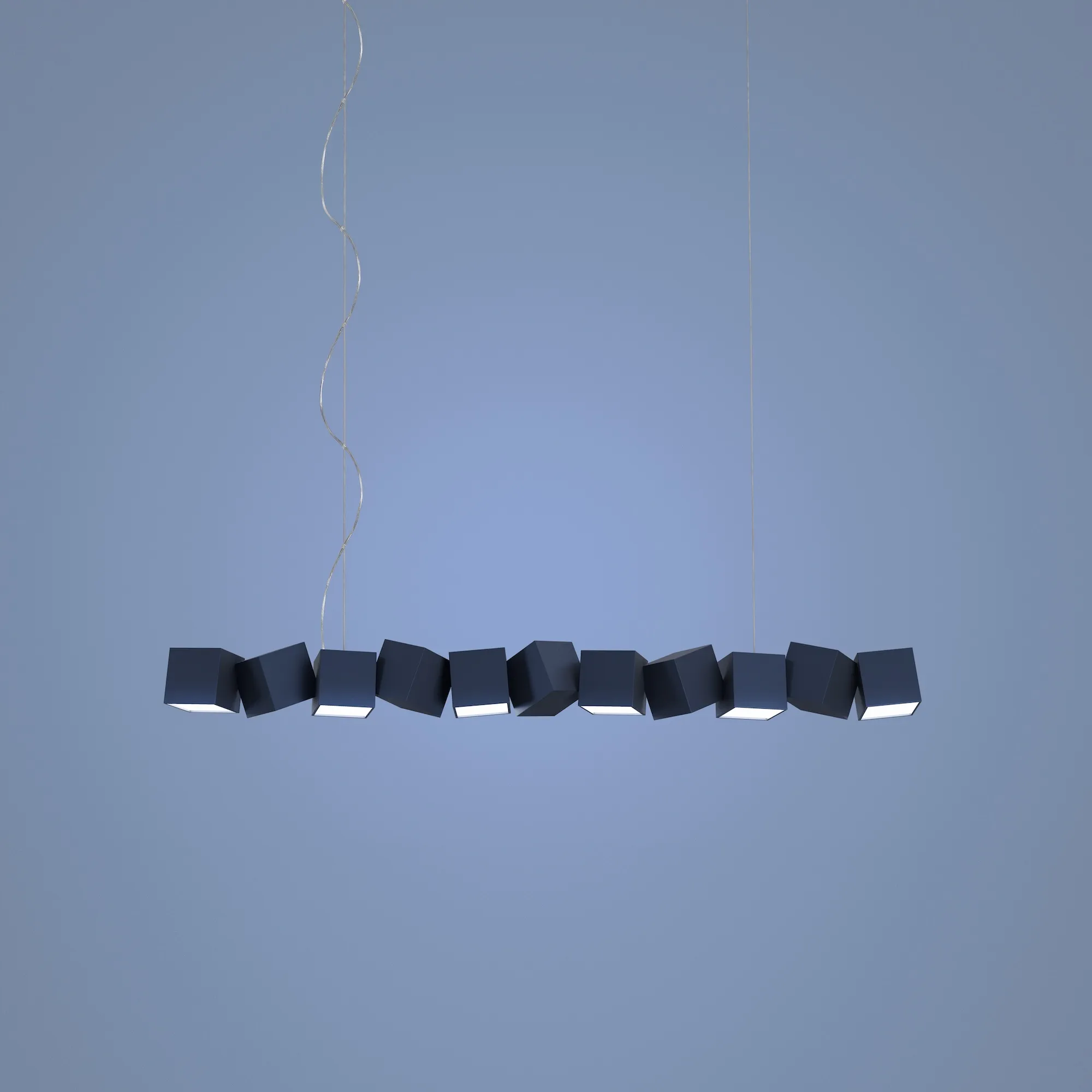Every second cube has a built in LED panel and together they are designed and directed to spread an even light on whatever is below.