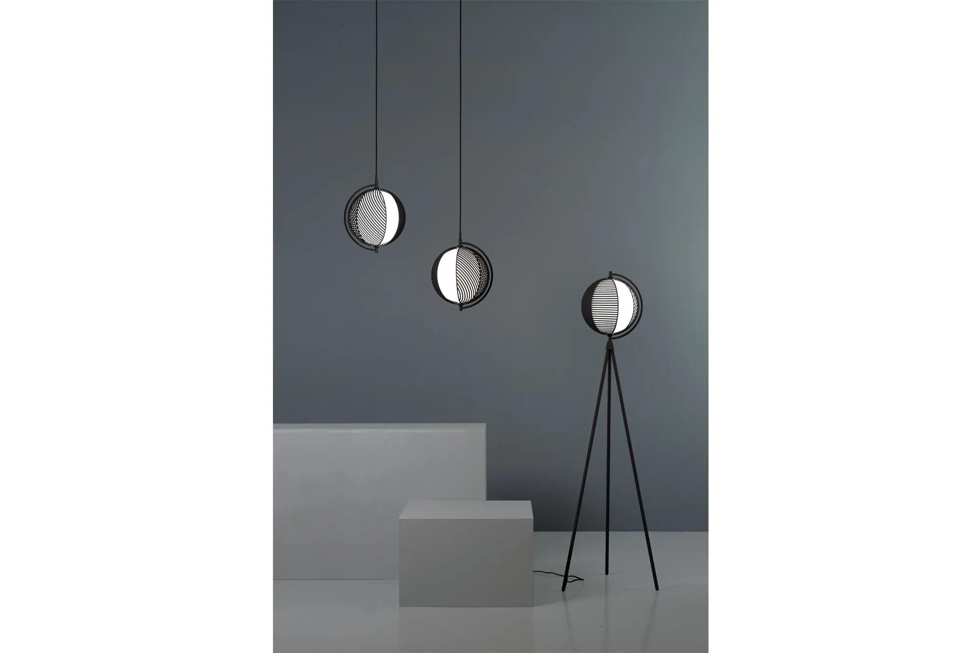 The Italian design combines a planetary physical image with an abstract concept of originality programmed by the beholder. The ability to customise its shape gives the option of casting different geometric shadows to suit different moods and interiors.