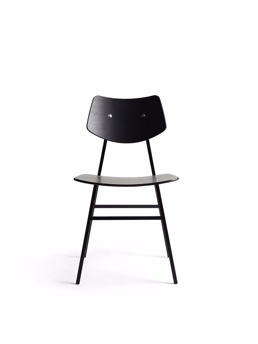 This iteration of the 1960 chair features a minimalist metal frame and aligns with Kralj’s earlier utilitarian work like the 1956 designed Shell chair. An elegant, curved plywood seat gives the chair a simple yet comfortable form that defines this iconic offering.