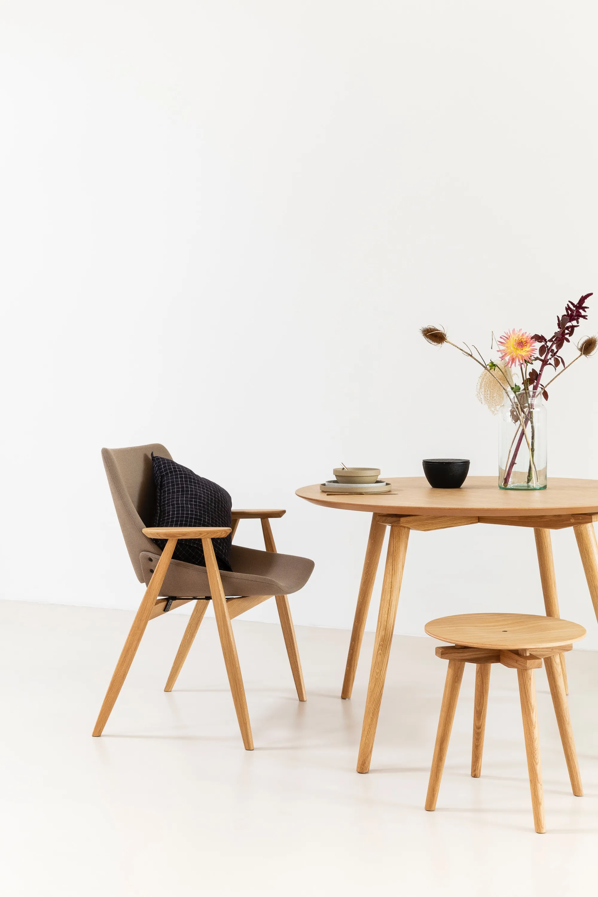 The CC Stool is also memorable due to the cross-type construction of the base with its technically perfect assembly of wooden elements. This means the stool needs only one screw to lock all elements in place. It’s a highly functional and visually stunning offering, perfect for modern living.