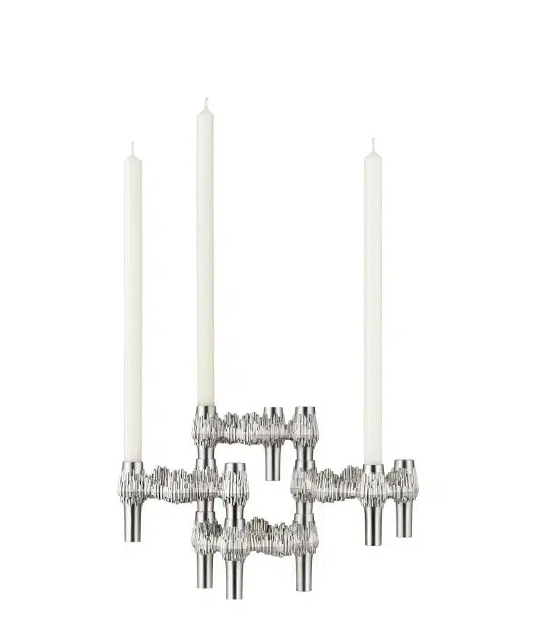 The modular design allows the candle holder to be endlessly reconfigured into unique and entirely customizable sculptures. Perfectly aligned with the stackable concept behind the STOFF Nagel collection.