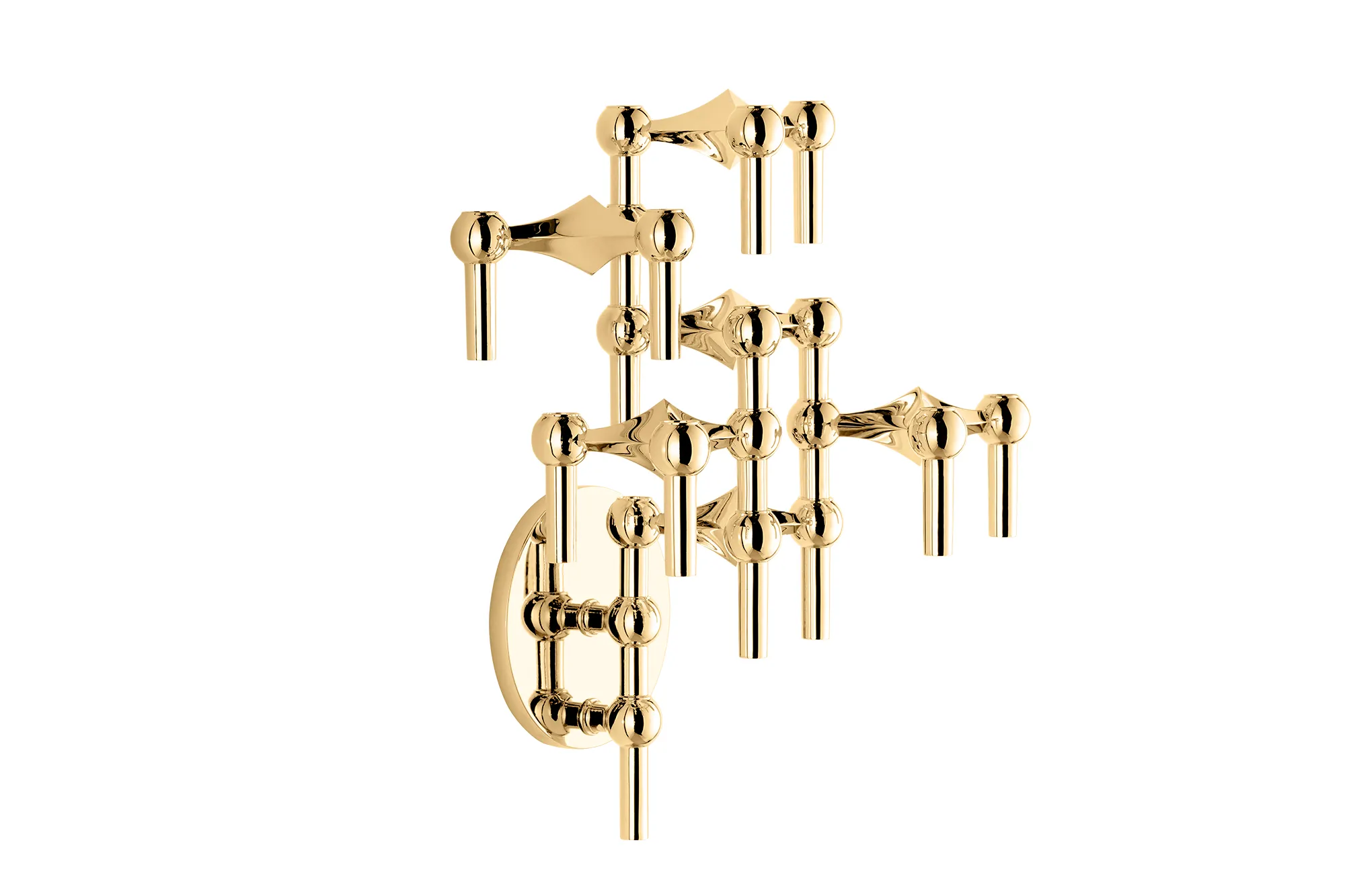 Build up your sculpture from the base of the wall hanger with your collection of candle holders. We recommend placing a maximum of 25 and a minimum of 5 candle holders on the wall hanger when creating your wall sculpture to obtain the best visual base.