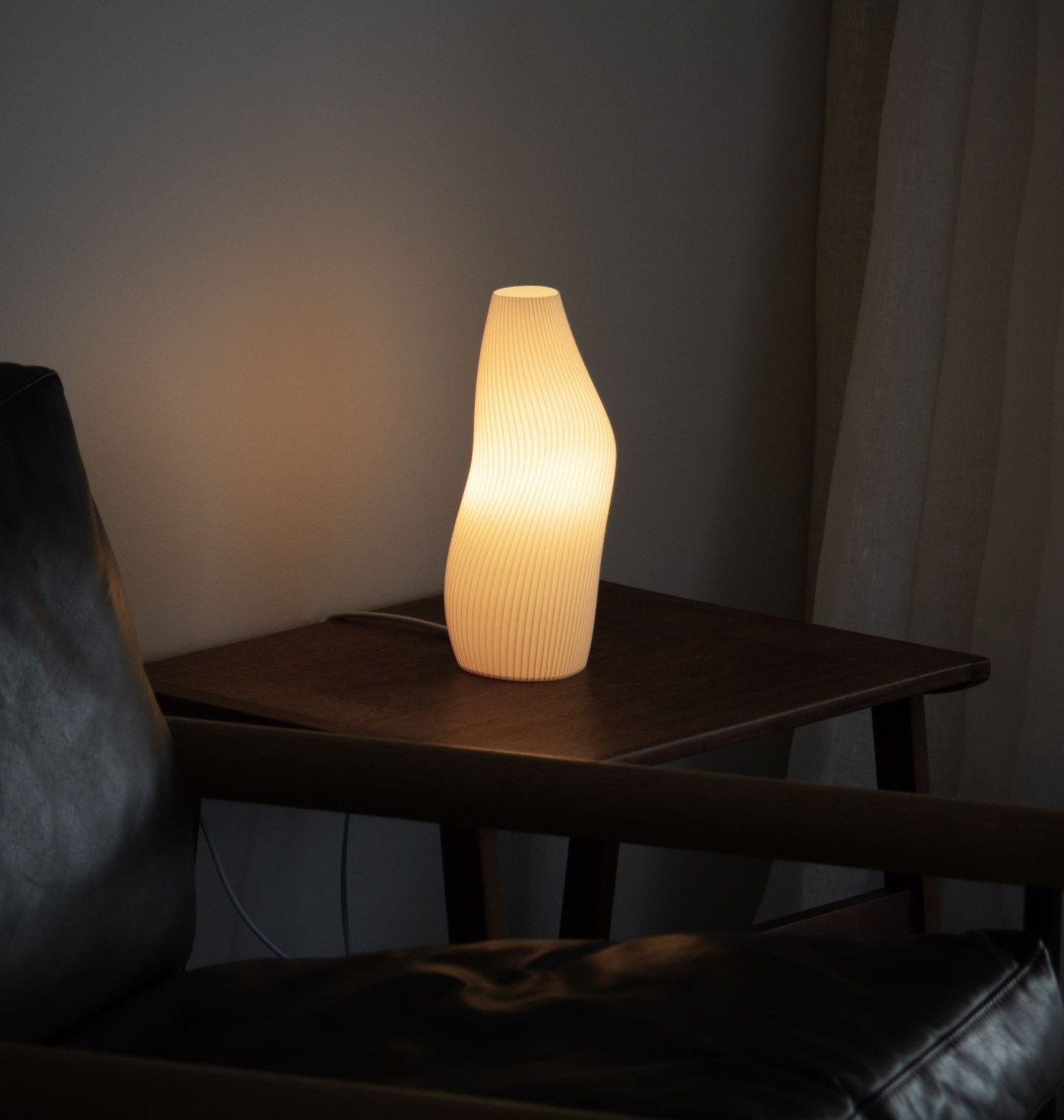 Cam works exclusively with recycled PLA, a renewable polymer made from corn and sugarcane, sourced locally from a company that transforms post-industrial food packaging and recycled plastics into high quality PLA filament. It’s a slow, intentional approach to making — one rooted in responsibility and craft.