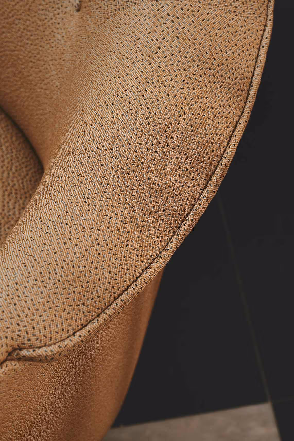 The rich padding creates fullness and, together with the buttons, draws references to the 1950s, while the exclusive textile choice brings the design into the present. The angled legs make the chair lift elegantly from the floor as a counterweight to the soft heaviness of the upholstery, while the fine curved armrests and rounded details emphasize a soft and feminine expression. The refined armrests complete the design and invite you to rest nonchalantly in the arms of the chair.