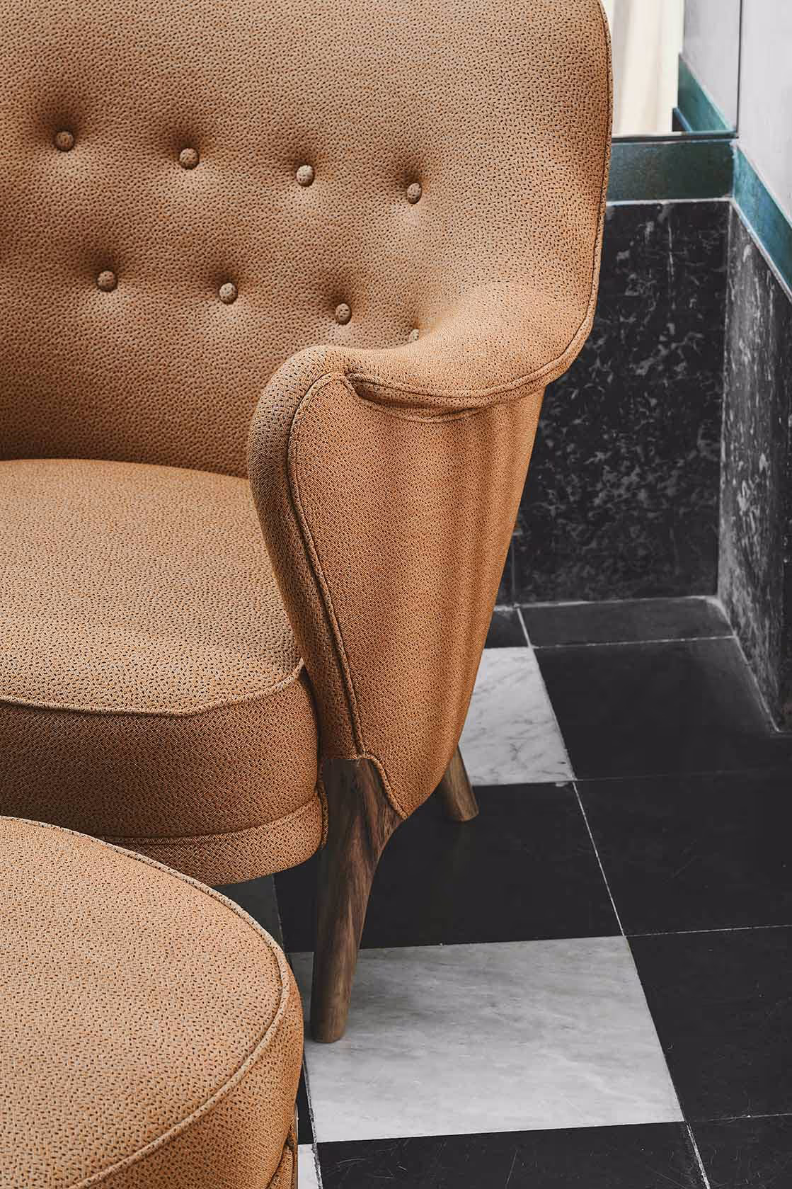 Elegant ottoman with an embracing, organic design that combines classic virtues with a warm personality. The chair was designed in 1953 by the renowned Danish furniture designer Arne Hovmand-Olsen, who became known for innovative furniture in Scandinavian style. With the Cocktail ottoman, you get original design for your favourite corner in the living room, bedroom or office, just as the lounge chair will dress up a sofa arrangement.