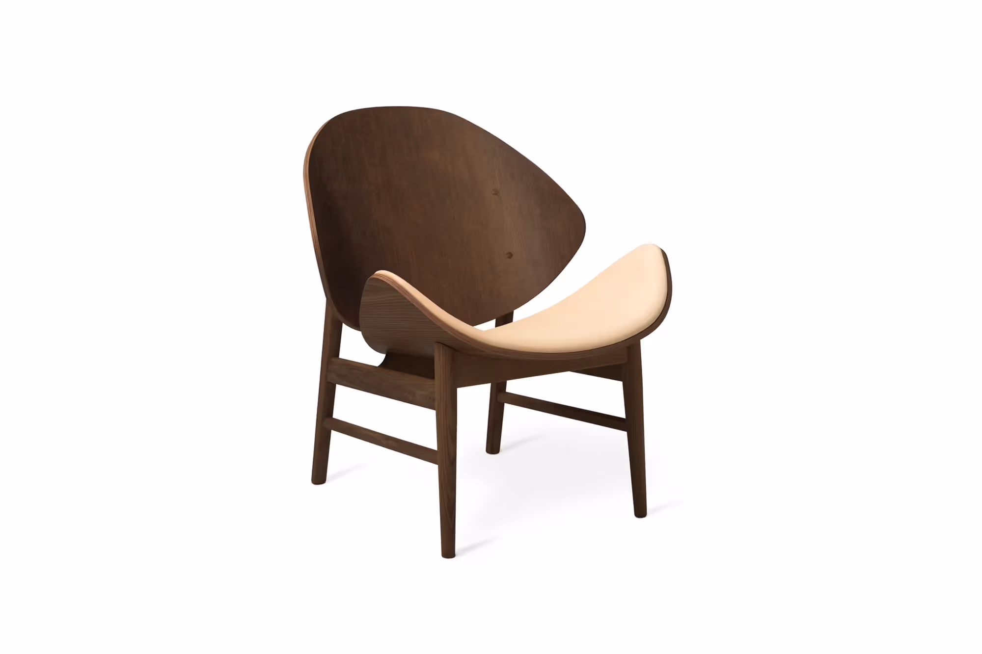 The Orange is a light, elegant and uniquely memorable mid-century armchair designed in the 1950s by the highly acclaimed Danish architect, Hans Olsen. It is one of the earliest known shell chairs and acquired its name because of its characteristic back and seat, which are reminiscent of orange peel.
